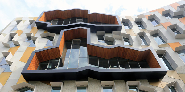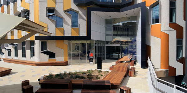 That’s a good question. I look for something that’s engaging and stimulating – which is what universities strive to be as they openly compete for students. They need to stand out as open, connected to student activities and learning, with real life and colour. Its use of colour and play of light is quite exuberant. Highlighting key views and social spaces through uses of formed expanses of glass and highlights of colour help to portray the ambitions and ideas of the building. In Sylvia Walton, we wanted to generate a building that created anticipation and excitement as a backdrop to better learning. Hopefully that’s how most people will experience it.