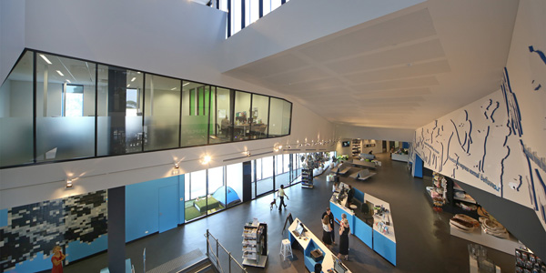 Yes it does. The glazing at the main entry sweeps down as a diagonal and meets the floor at the clinic waiting area and opens up in the more public area. In other areas such as the clinic it’s quite constrained. At the higher level of the administration buildings, EVantageTM SuperBlue glass is used less for transparency than as branding gesture. It also provides a degree of privacy. In the dog adoption and dog day care areas below the administration area, EVantage Grey is used mainly for thermal performance. We could have used clear glass, but it can be confronting for the dogs. People can still see what’s going on, but it’s slightly obscured for pet welfare. Of an evening, passing traffic gets good views of animal training or exhibitions. In sensitive areas – the clinic for instance is potentially sensitive – translucent glazing ensures natural light and privacy. We layered glass just like clothing for comfort and specific needs. There’s no doubt Viridian’s SuperBlueTM is a key here and being present to watch its installation was tremendously satisfying. We had confidence that it would work well and we weren’t disappointed.