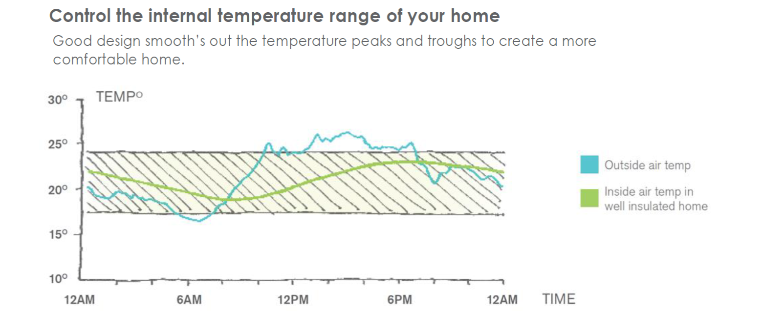 Choosing an energy efficient glass or double glazing makes a huge difference because it slows that absorption of outside temperatures. This takes the edge off the peaks and troughs in temperature which occur in the home when we are in extreme summer and winter months. A high performance glass and window smooths out these extremes, creating a consistent temperature in the home all day long. This means you’re not rushing to switch on your powered heating and cooling, which can take pressure of those dreaded energy bills! See an example of this in action as told by a homeowner here.