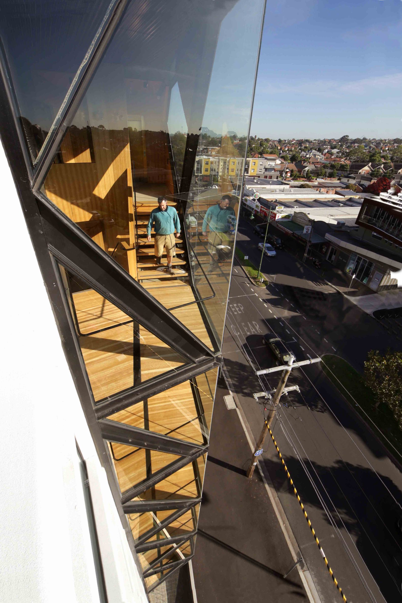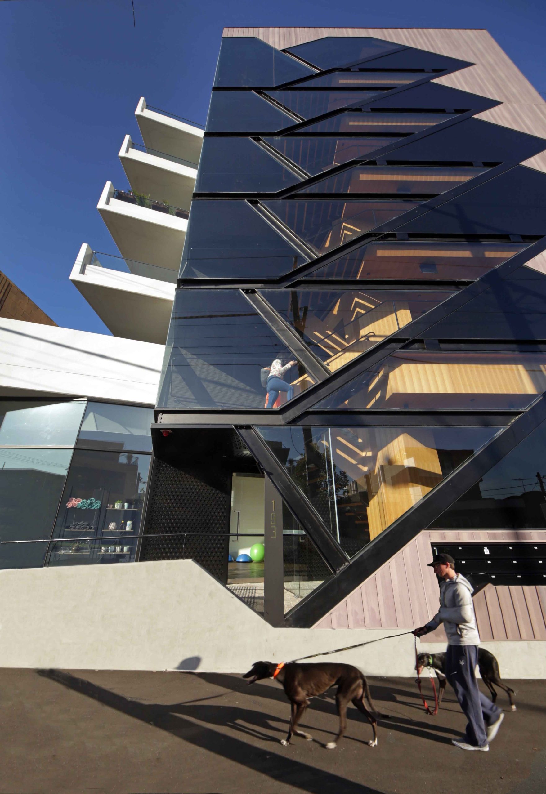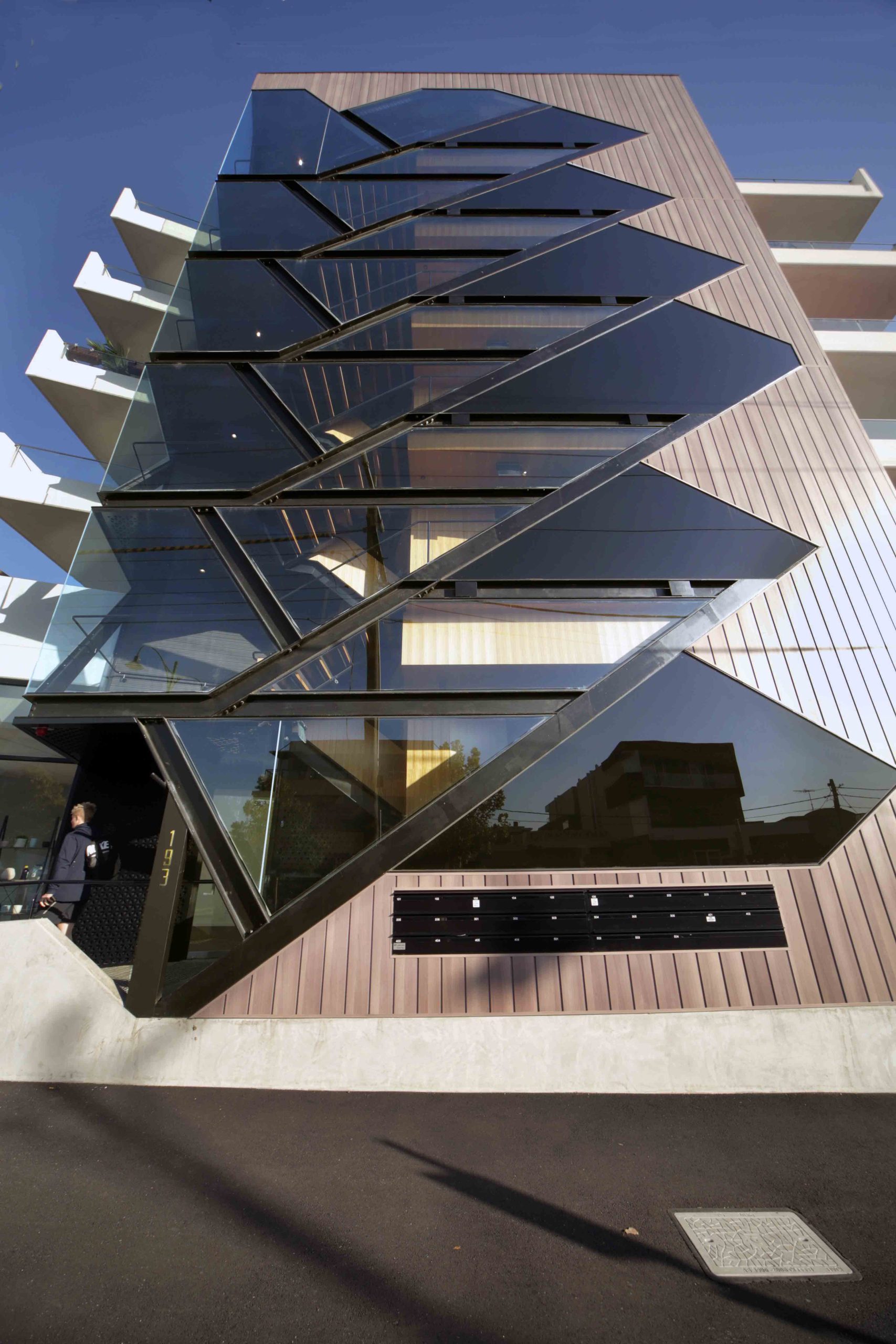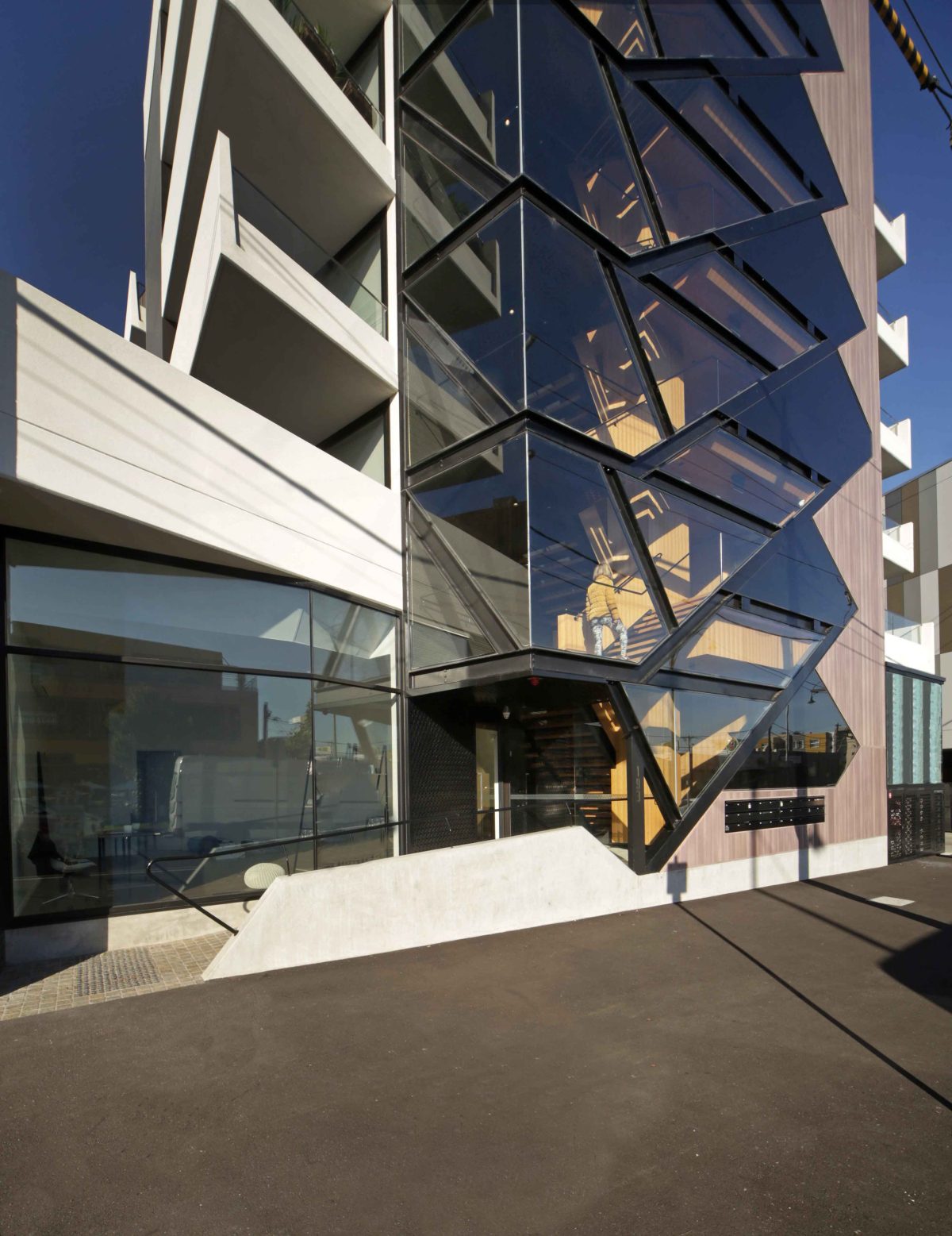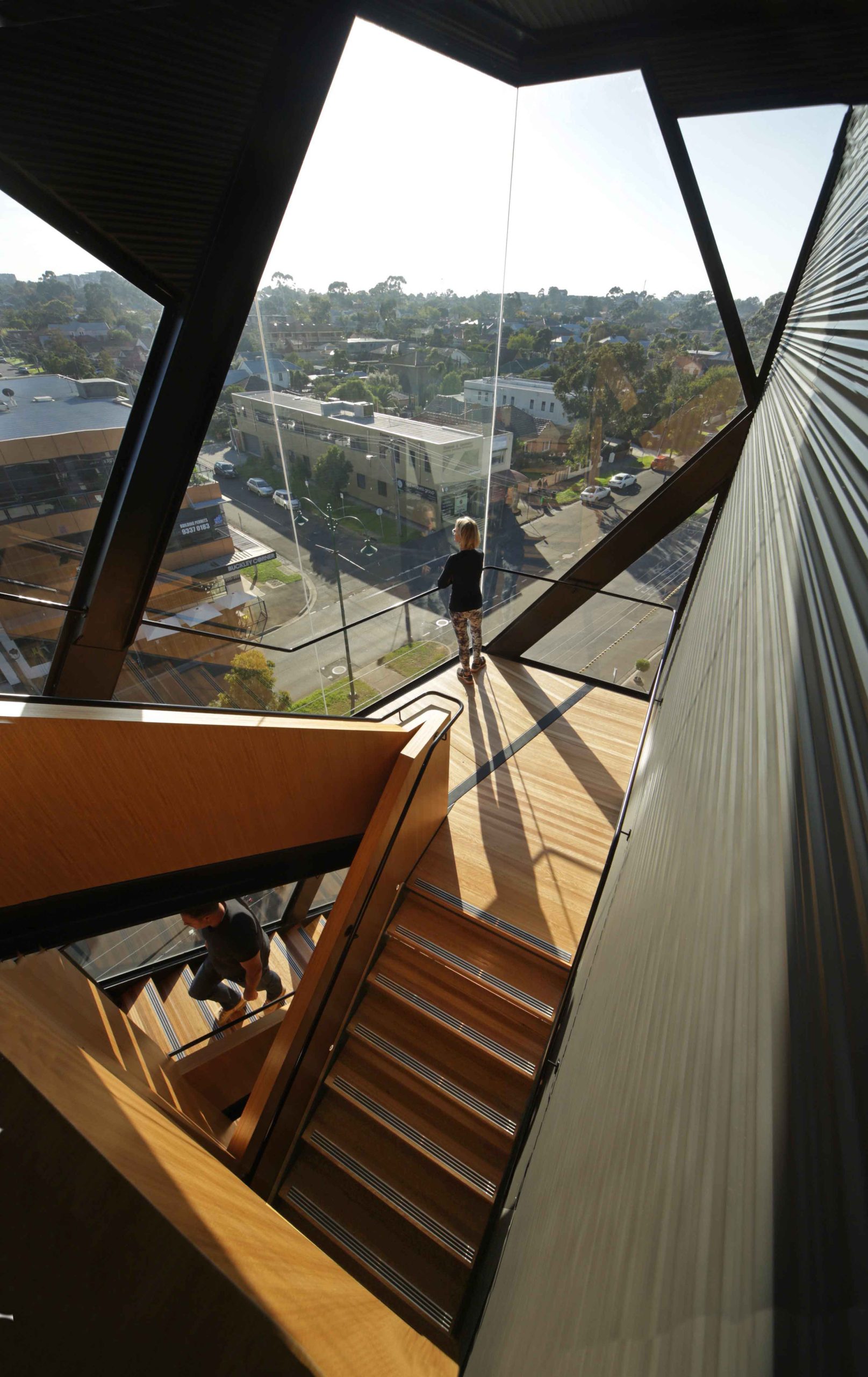 The result is a showcase of geometric glazing that frees occupants and building users from a lifts-only policy.