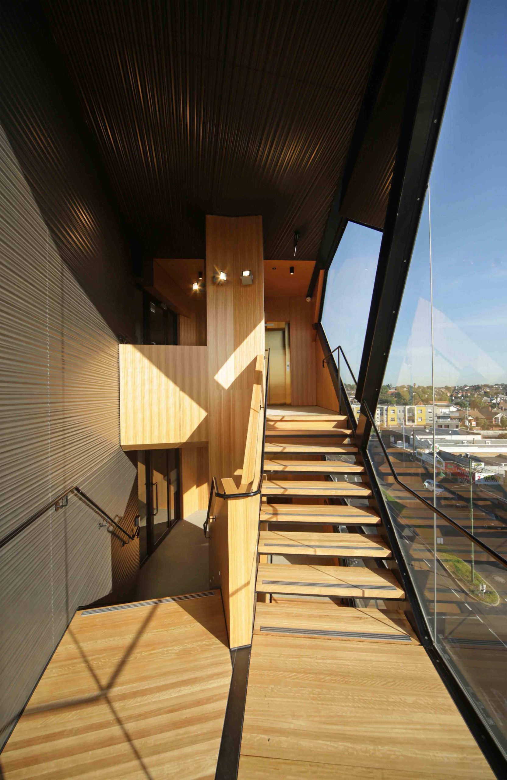 “The views from that staircase are elevated right across to the horizon or down into the street. That’s a nice way to start the day. There is a choice between waiting for the lift or taking the stairs, which physically, is easy. And there was that extra incentive that it could be a very nice experience as you just wind down that staircase.” John Demos, Architect