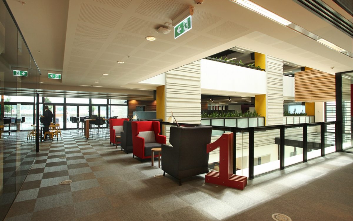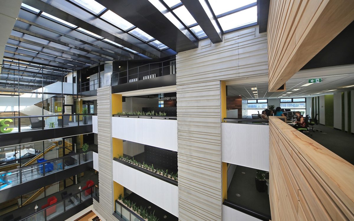 “The heart of the building is where the glass staircase acts as a conduit for staff movement and circulation. That’s a special space with beautiful light and you can see how staff are drawn to that area” Stephen Webb, DesignInc Design Director