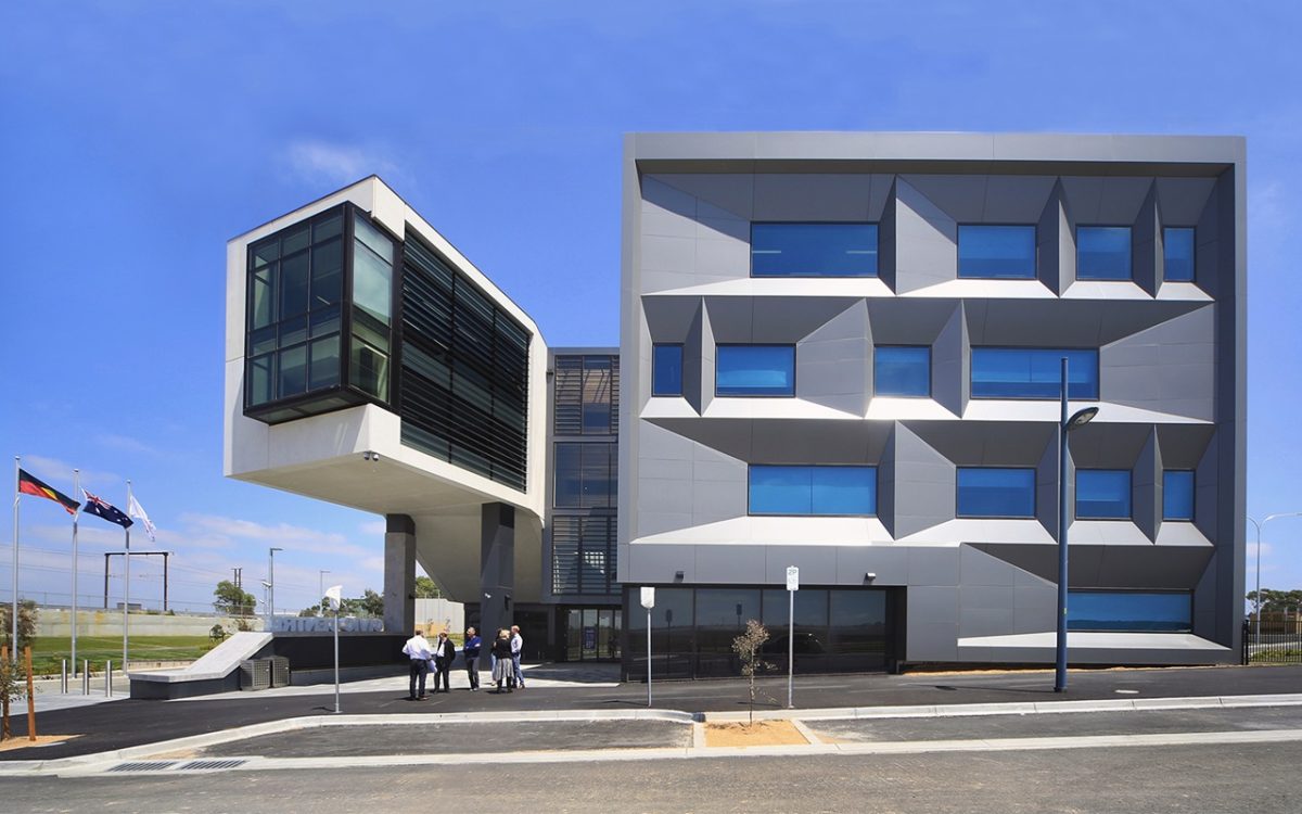 Inspired by the great iron-framed and glass railway stations, this new administrative headquarters makes a grand appearance adjacent to a busy outer-suburban rail line. Its crystalline form and detailing anticipates the inevitable urban spread with quality and conviction.