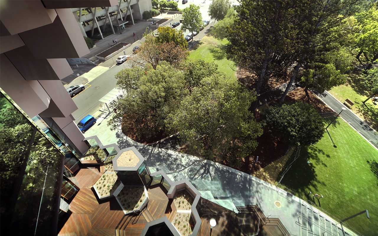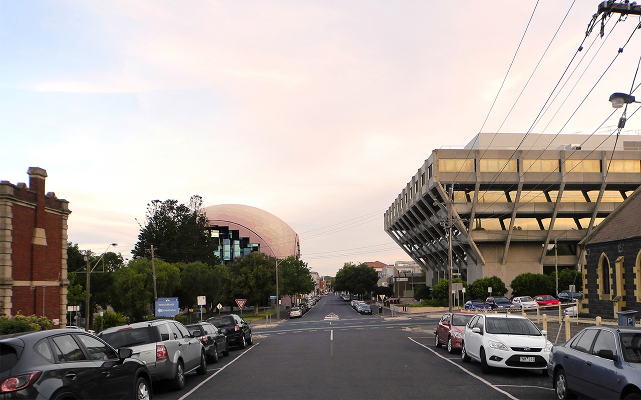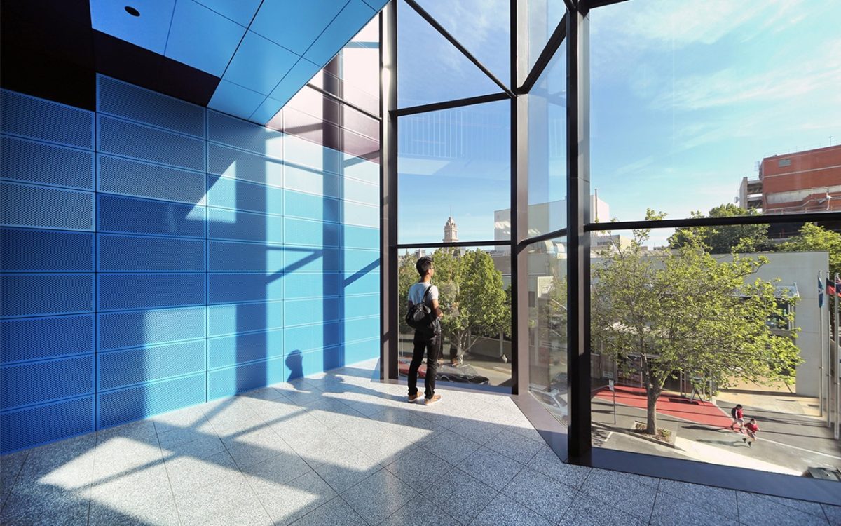 The location of this building also starts its own dialogue because it’s adjacent to the Geelong Peace Memorial, essentially a neo-classical building. To the north is the so-called Upside Down building across the street running on this arts and culture spine on Little Malop Street.