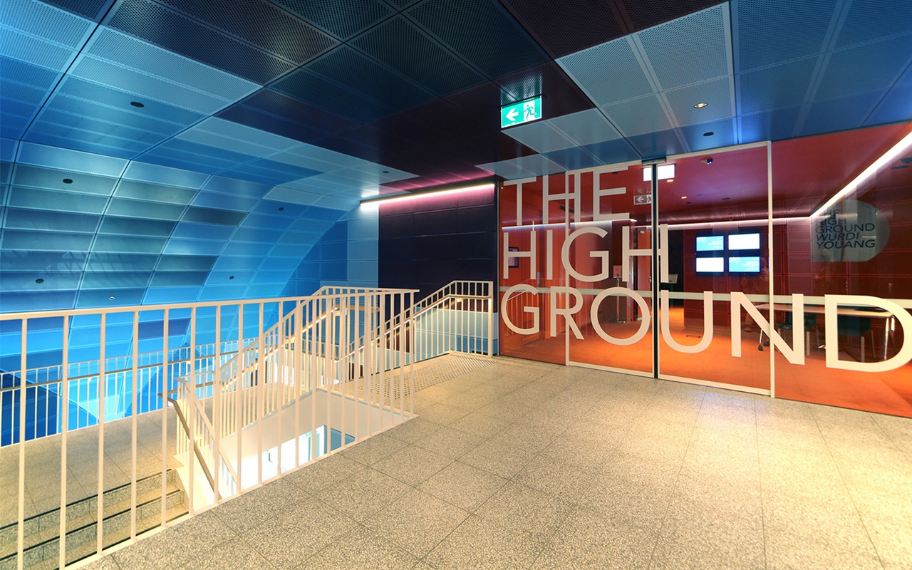 Yes, glass is a key component with any contemporary building. The extent of glazing and its performance is vital. Glass has two key roles here: it acts as a mirrored, reflective surface and some of the quality of light internally is from incidental reflection. The refracted light from these mirror strips looks like ribbons of light on the façade. The glass reinforced concrete skin acts as a canvas. The interesting quality is that those light rays are accidental rather than deliberate. The zigzag form of the glazing was a conscious decision to assist with the environmental performance. By rotating the glazing away from the west, it faces the north-west and south west, the glazing system is more efficient.