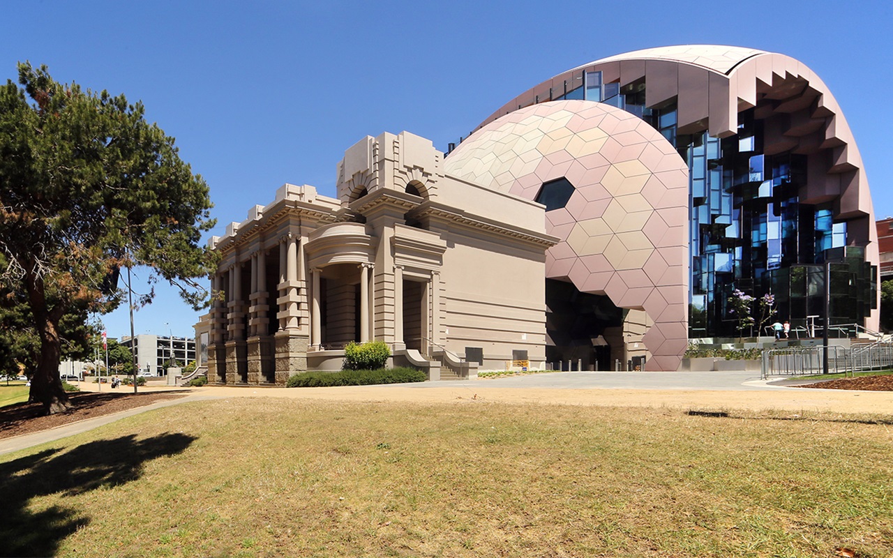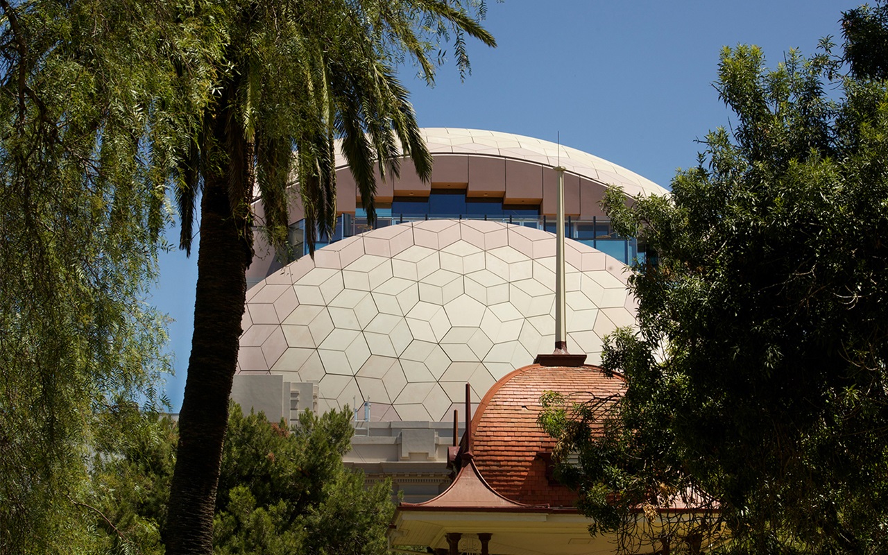 Part yesterday, spiced with plenty of tomorrow, the domed library is a rare civic design that stands out for all of the right reasons. Sited on the edge of historic Johnstone Park with commanding views of Corio Bay, the library as intersection of printed word and cyberspace is reminiscent of a deep space observatory.