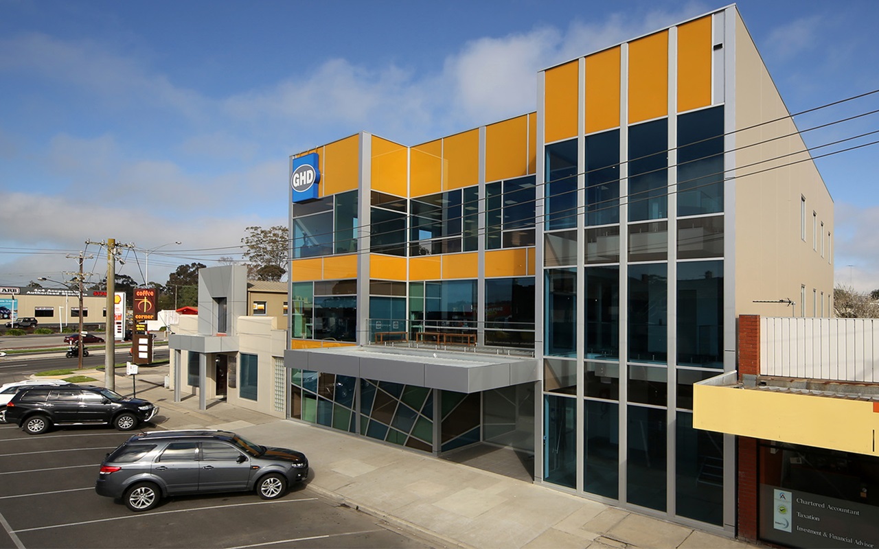 Global architects GHD were in need of a new regional home and went with this high-visibility low-rise to craft and office fit-out of transparency and vibrancy.