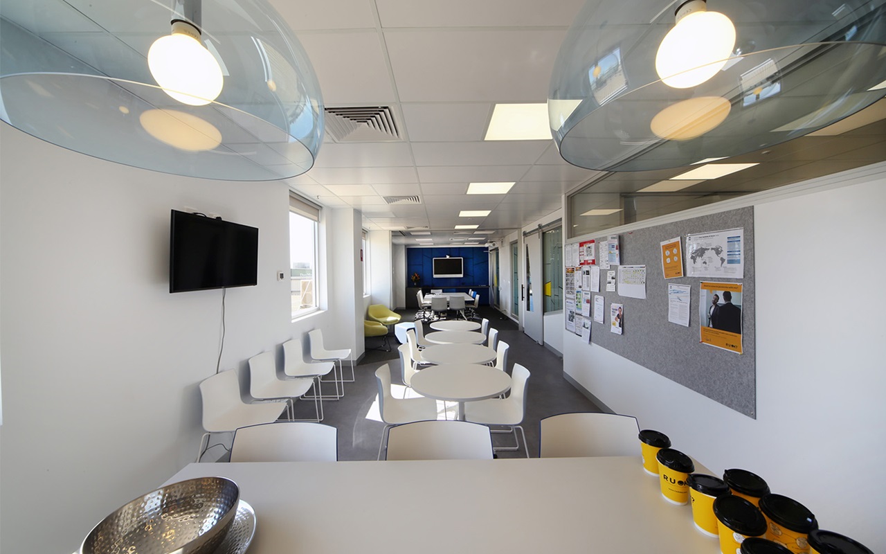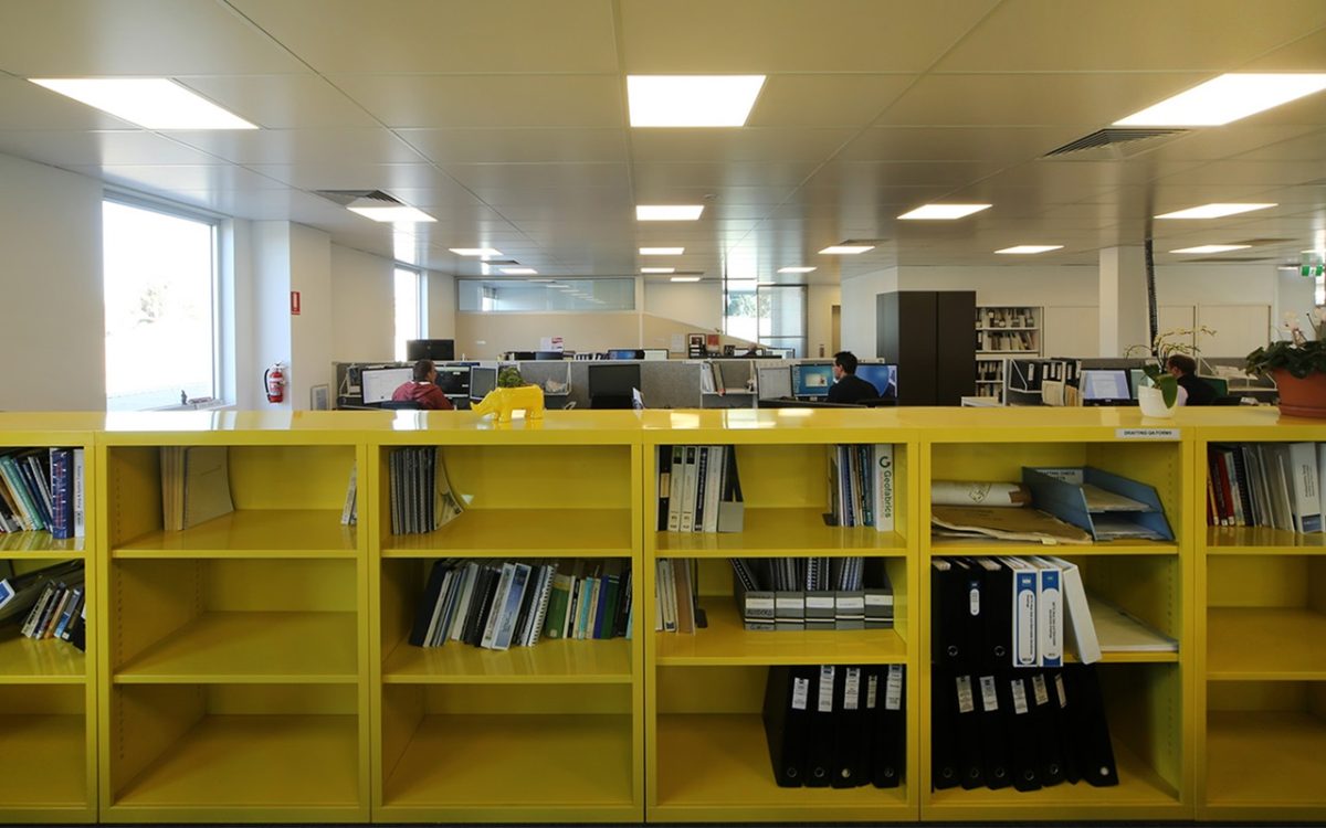 Yes. GHD looked to create a workshop and offices that reflects the group’s philosophy. The most important building element is the street façade and as such that front envelope went through quite a few iterations, but the basic objective was to avoid a linear shopfront streetscape. There is a bigger set-back than most neighbouring frontages. In other words a simple U-shape was created. Rather than to continue the facade as a horizontal skin, those corner elements create opportunity and excitement inside. Staff in those corner areas, transitioning from the lobbies and office spaces obtain fractured views, using different directions, rather than just one view straight out of a window. Those are the subtle opportunities.