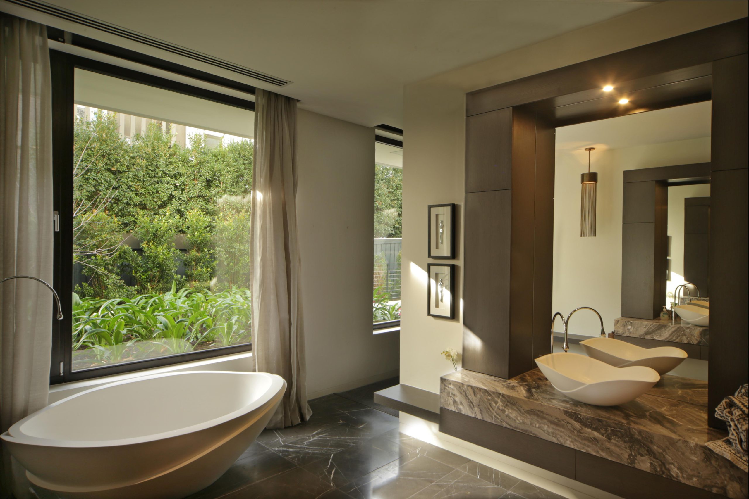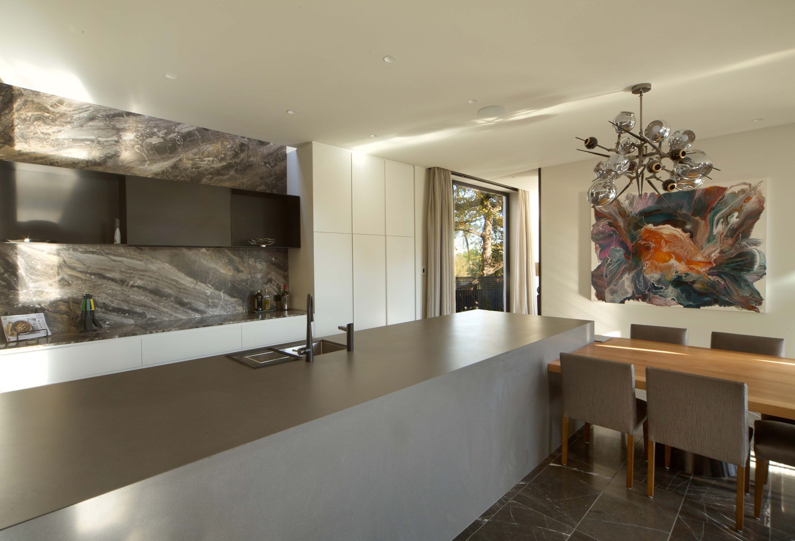 There’s also a unique-ness about the topography. We had lovely trees and outlooks. And we had the need to put in the home a very substantial basement. I didn’t want to create a basement that was entirely underground. By lifting the home up and then dropping down the back level we could open up the rear of the basement with full width stairs leading up into the back garden. That bottom level now forms a three-level building, and it doesn’t feel subterranean.
