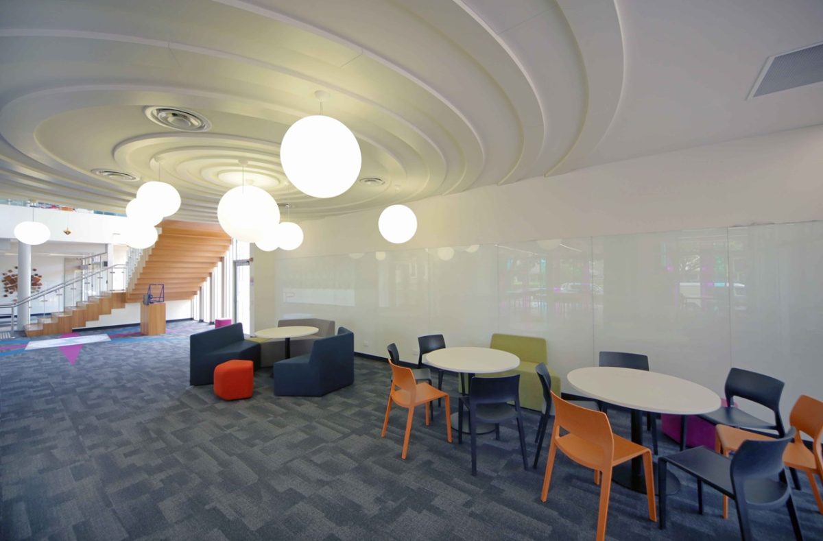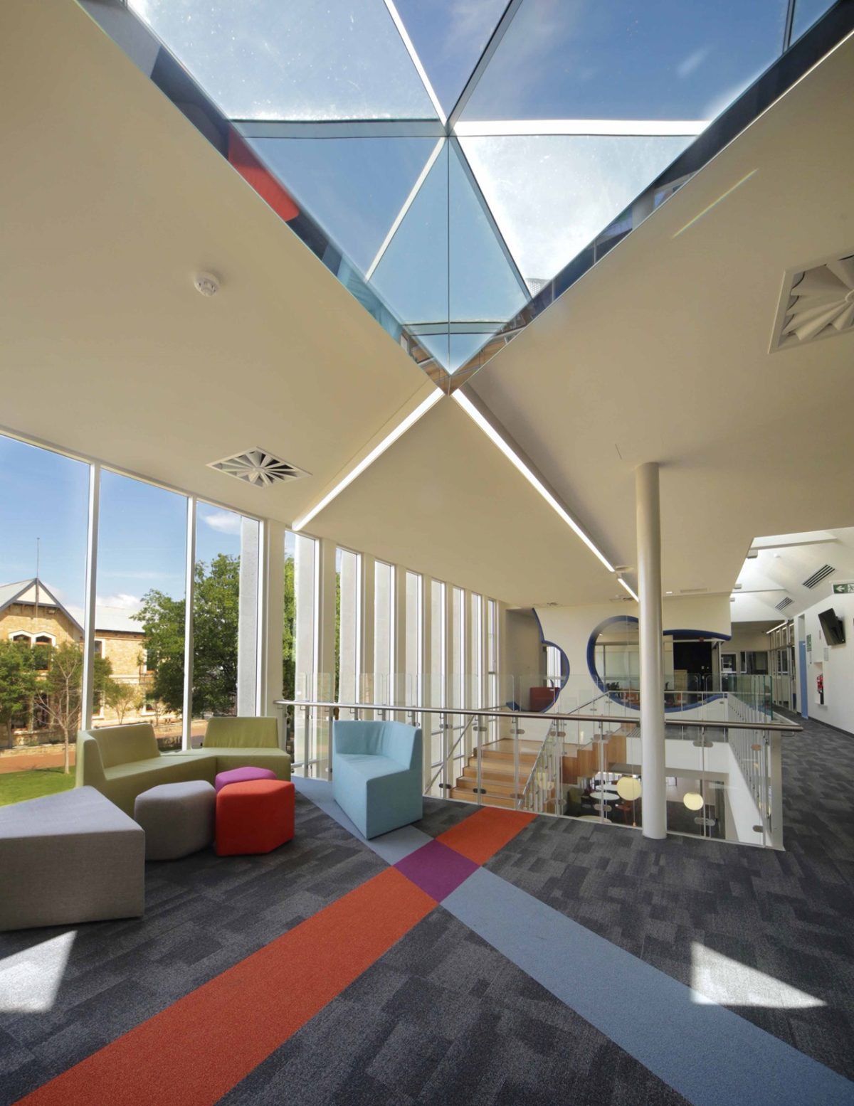 That’s true. Apart from a practical purpose to that of bringing plenty of indirect and direct light into those rooms it makes a beautiful connection with the specimen eucalypt and heightens that whole feeling of connection whether students are inside or out