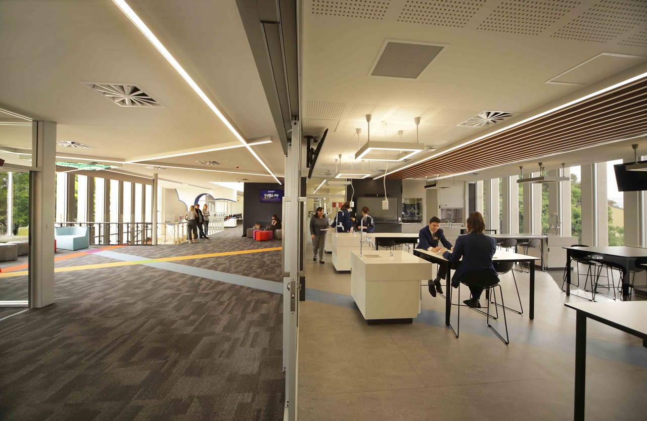 The centre is designed to provide an immersive STEAM-based learning environment in which science, technology, engineering, art and mathematics come together. Large sliding glass door panels, collaborative shared learning areas, serviced flexible learning areas and seamless transitions between indoor and outdoor learning spaces all combine to encourage interdisciplinary learning and collaboration.