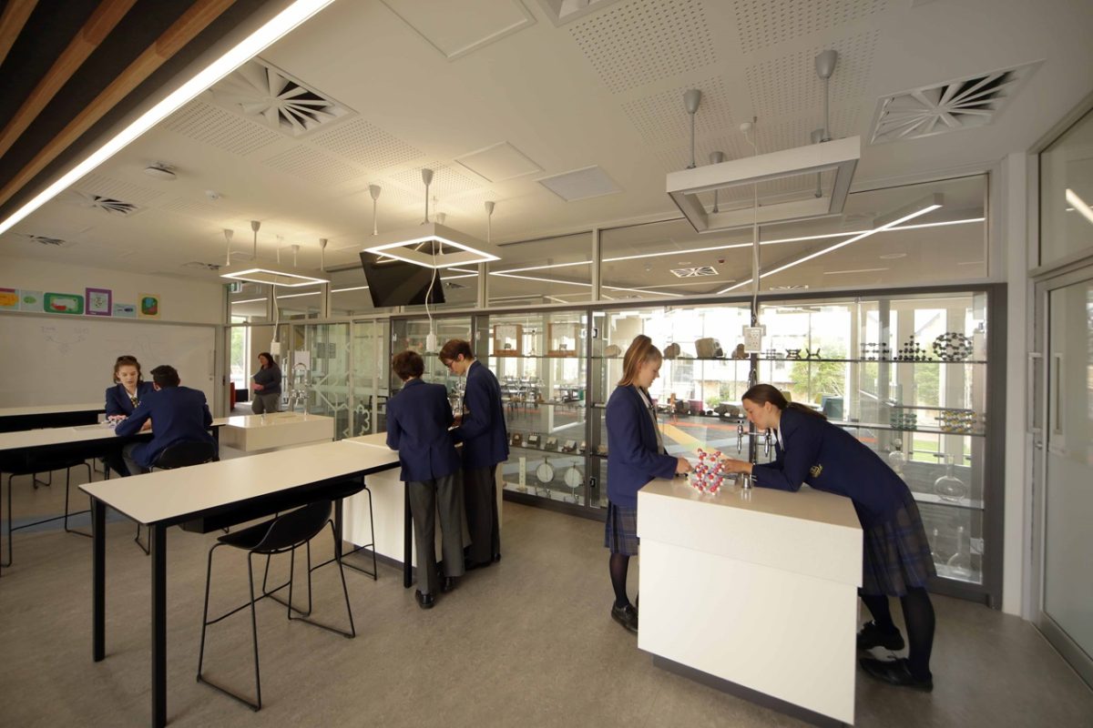 The school couldn’t find a comparable exemplar project. The mix of spaces, need for flexibility and visible learning has resulted in a transparent building. Being able to easily reconfigure laboratories and other learning spaces is also a huge benefit..