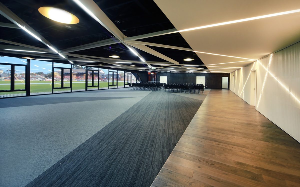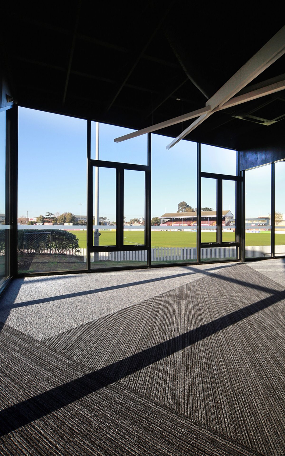 It needed transparency yet visibility so that on approach from the side entry of Ingles Street, patrons are really mindful that the building doesn’t obscure the view of the goalposts or block views. You can also see through the building, via the windows, so that was very important not to impact the game in any way. One of the biggest issues was the expanse of thermally broken windows. High performance glazing helped us with energy rating compliance because there was no scope to reorientate the building.