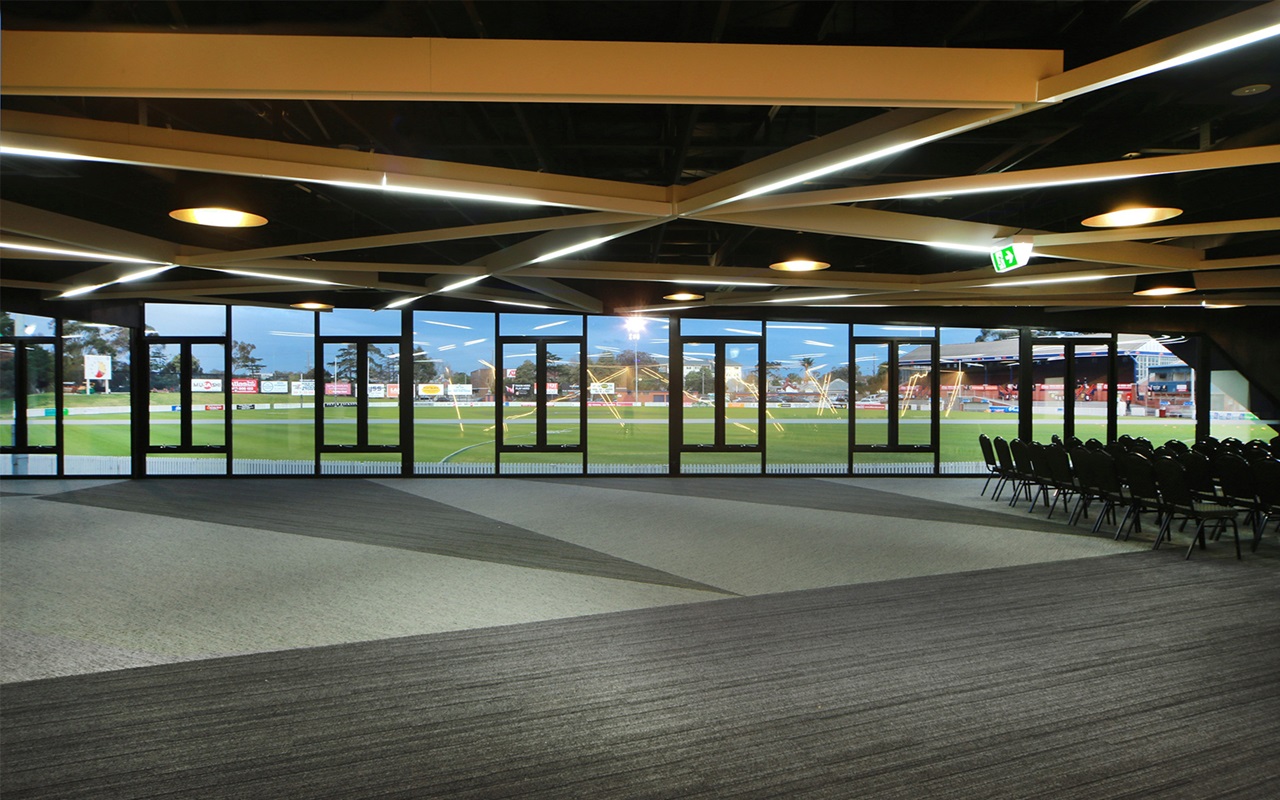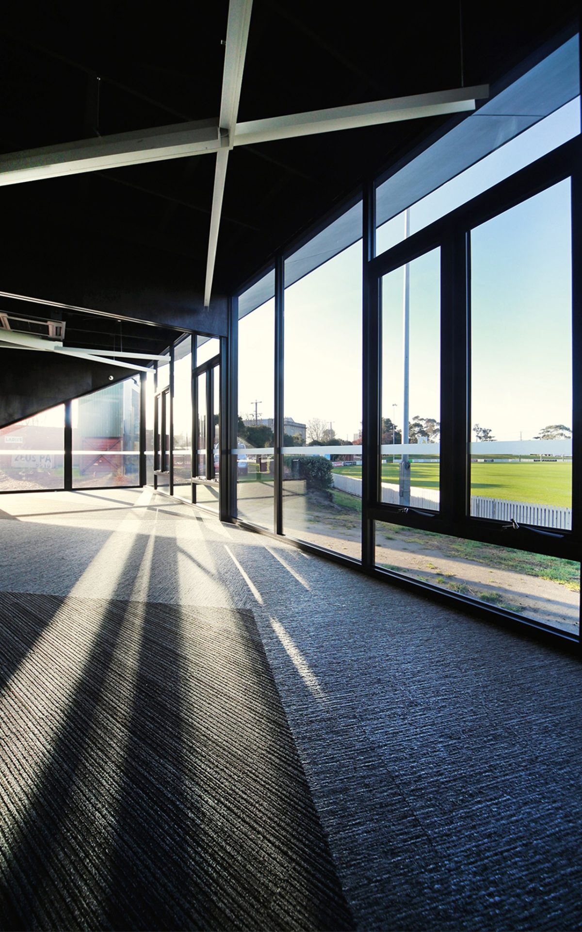 This new pavilion as administration and function facility, resides quietly on the ground’s northern edge with a vista of oval, sky and historic grandstand made possible with Viridian glazing as peerless window to the action.