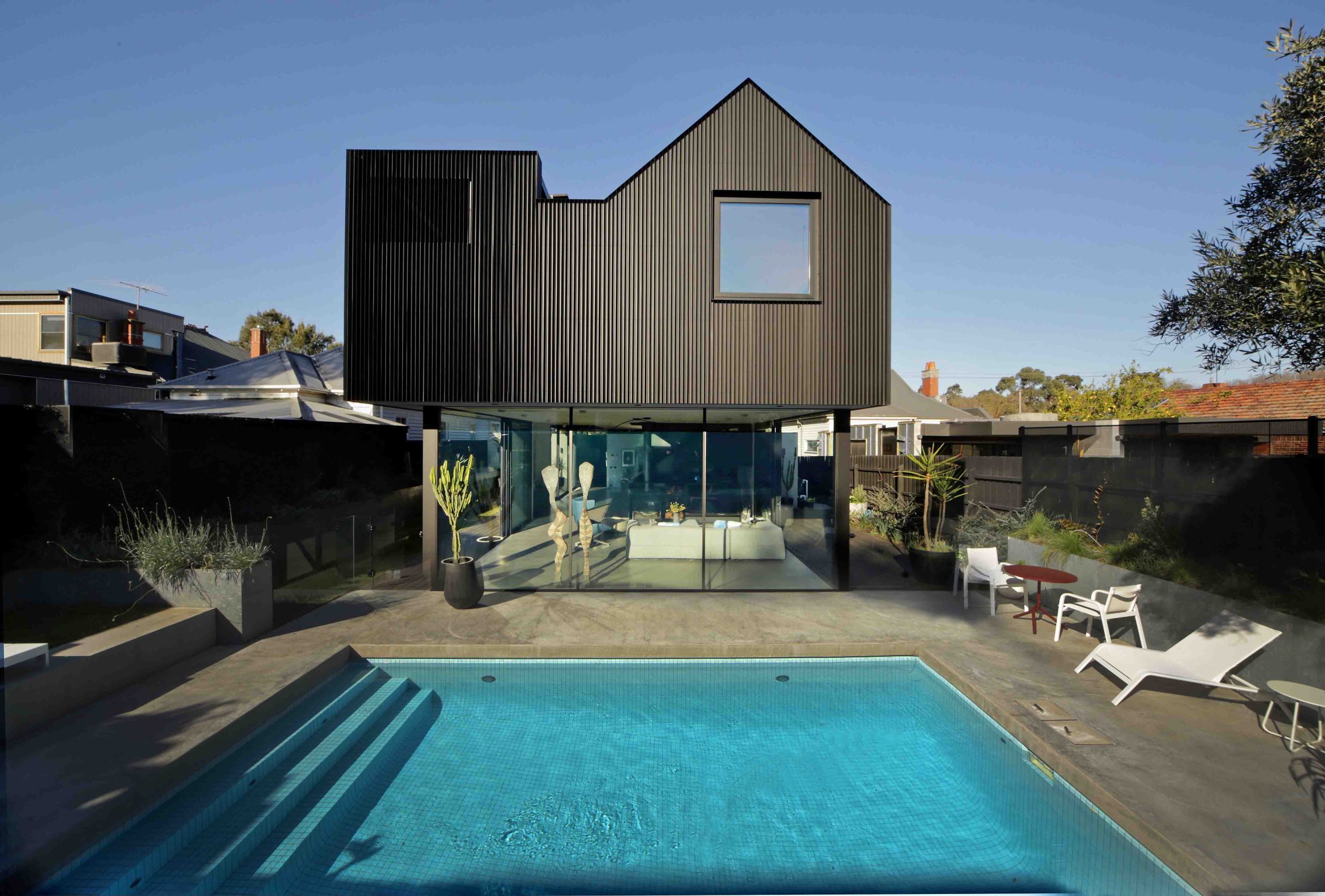 “The reduced scale sees a house-like silhouette floating in the backyard over the living spaces below. The long northern aspect is carefully designed with passive solar principles...” Phil Snowdon, Architect