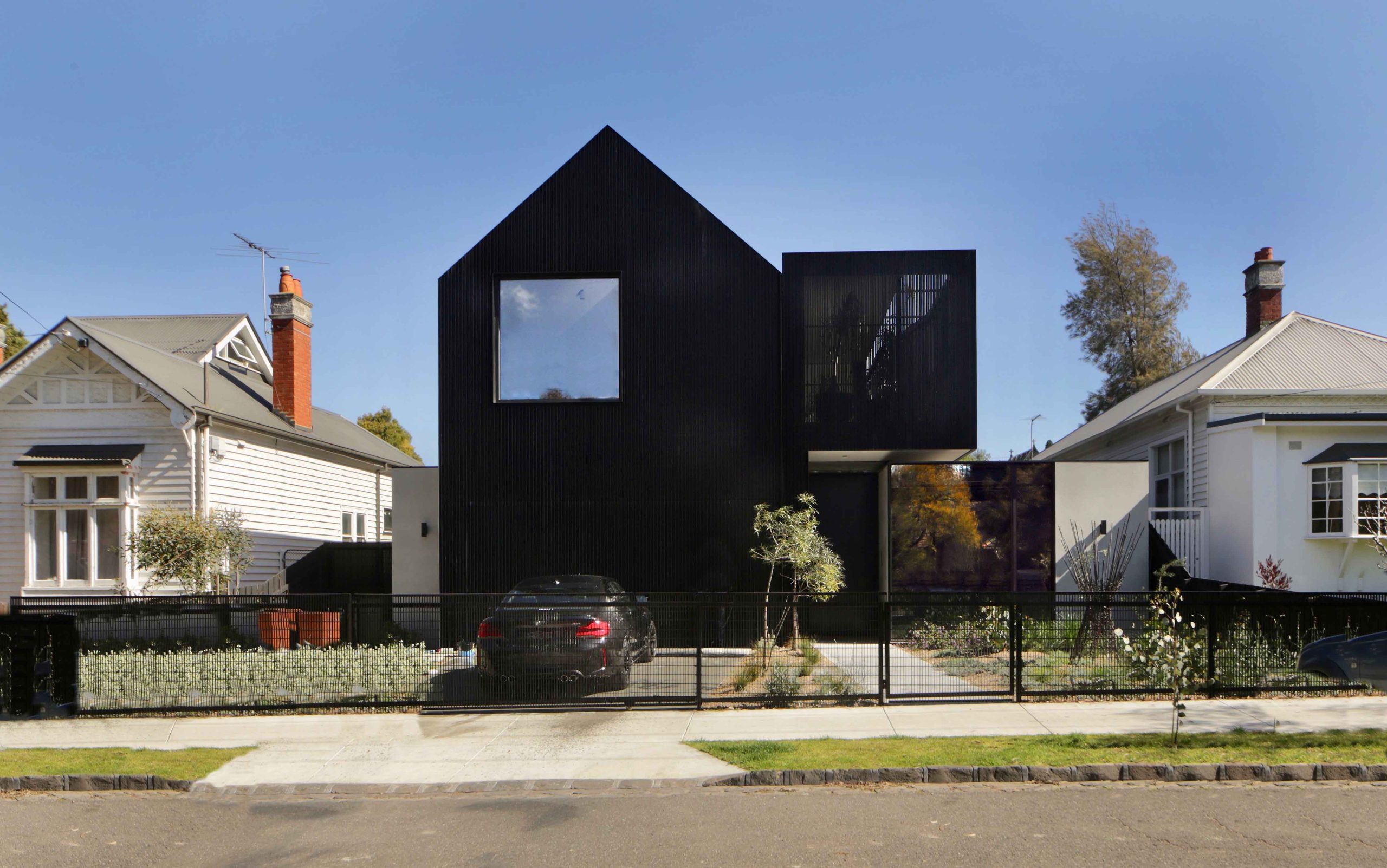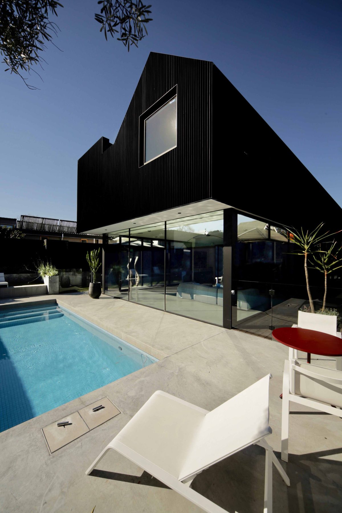 Cloaked in black with windows strategically sized and located, Ola’s design is architecture as liveable sculptural art. Viewed within the context of the street it’s an upstart neighbour, but considered more broadly, the house is contemporary architecture at its best. It is of its time and without obvious allegiance to old ways of living or building.
