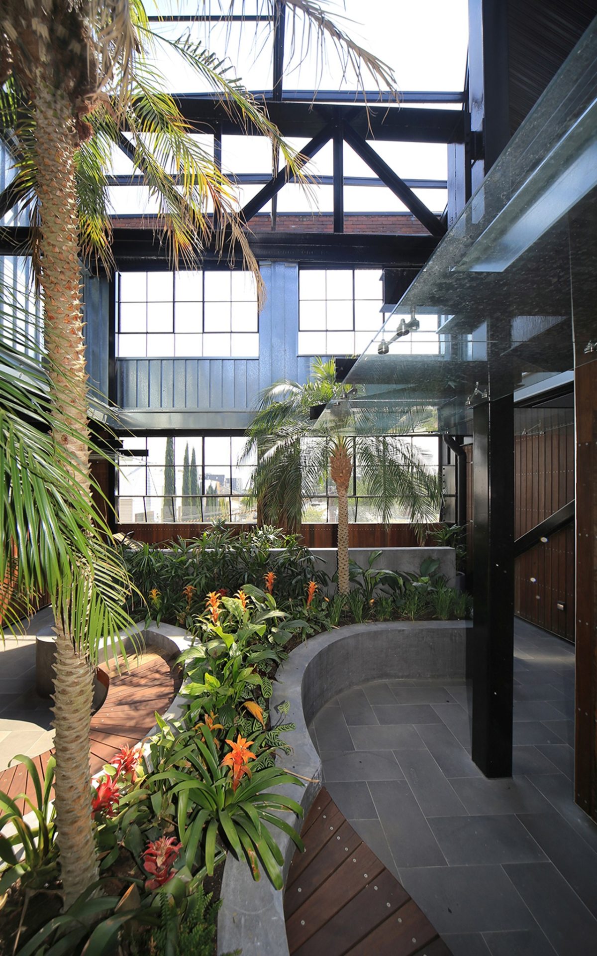 The broad, interior avenue of the first floor entrance foyer is highlighted by lush, serpentine semi-tropical planting – with cleverly integrated seating. A small, communal exercise area is created along the north elevation. A total of six apartments catch daylight and breeze, courtesy of Brenchley’s penchant for open planning, flexible window/wall openings and ingenious courtyard gardens – a touch of Paxton perhaps?Six apartments – three along the east wing and three on the west, are principally of two levels. Brenchley describes his role as ensuring project integrity and ‘value insurance’.