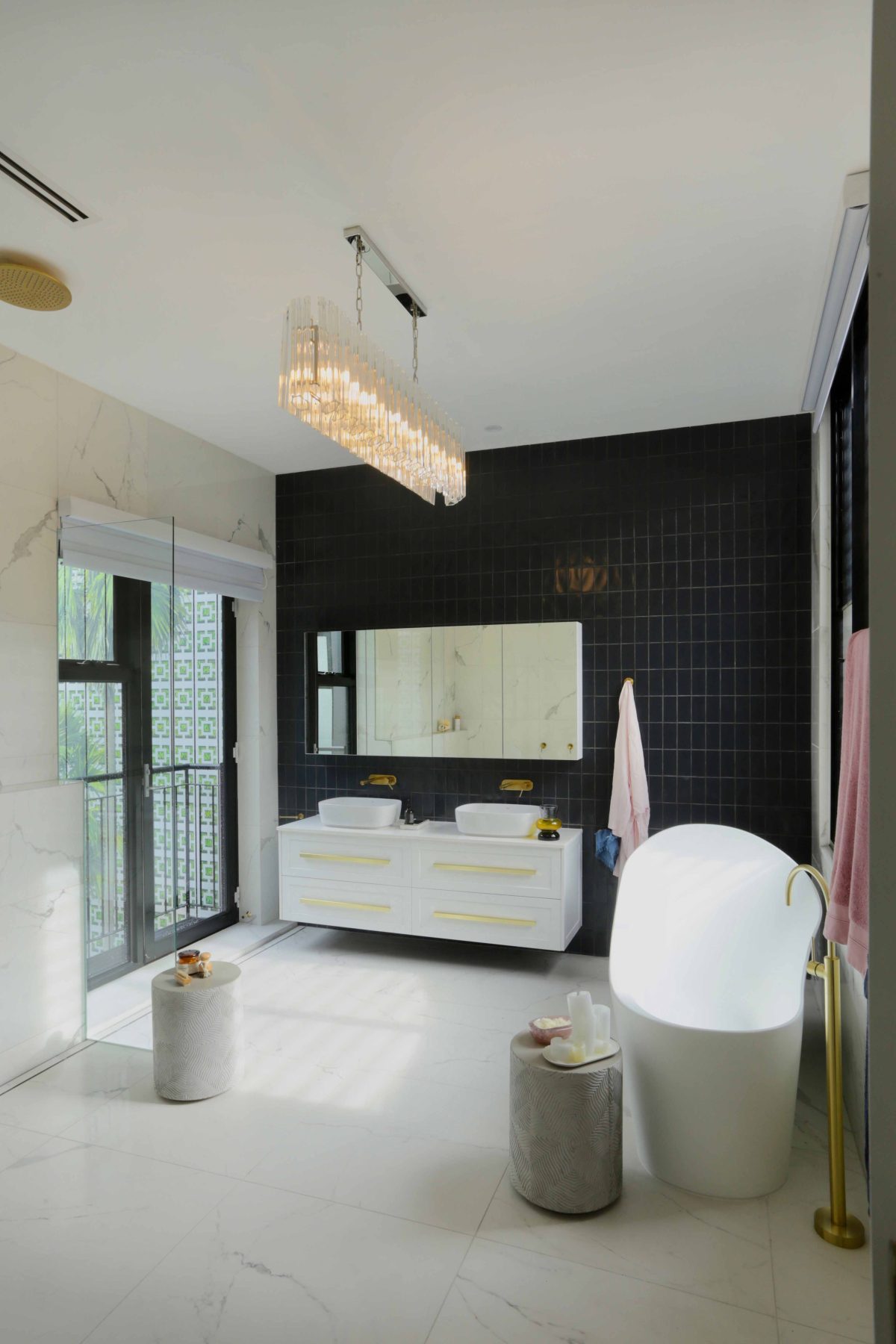 We love the use of glass in their amazing master bathroom. Bringing some refreshing natural light to those blurry eyed mornings.