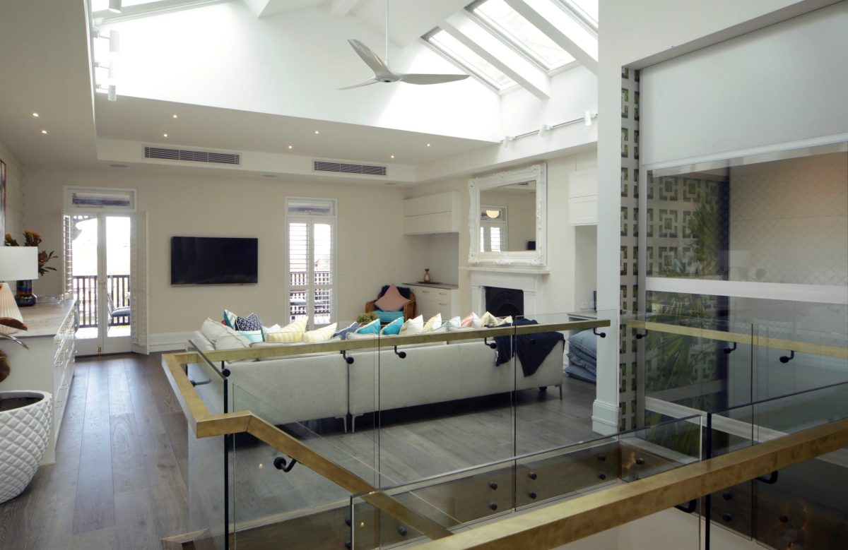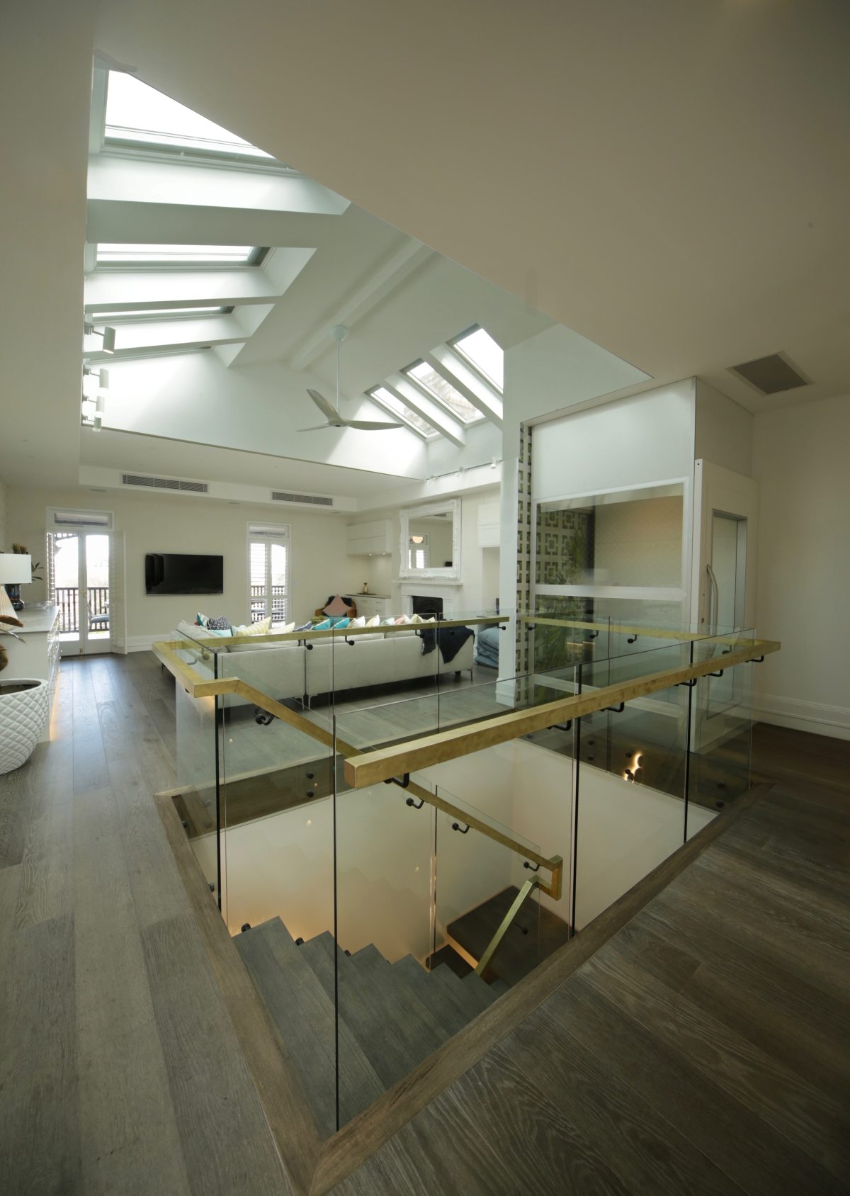 A great way to enhance the flow of light through a space is to use glass on stairwell balustrades. As you can see in the top level living area the glass creates another way for natural light to flow through the room.