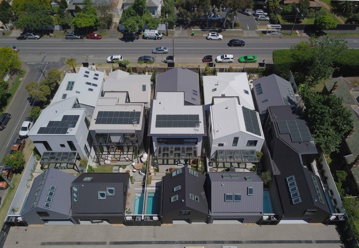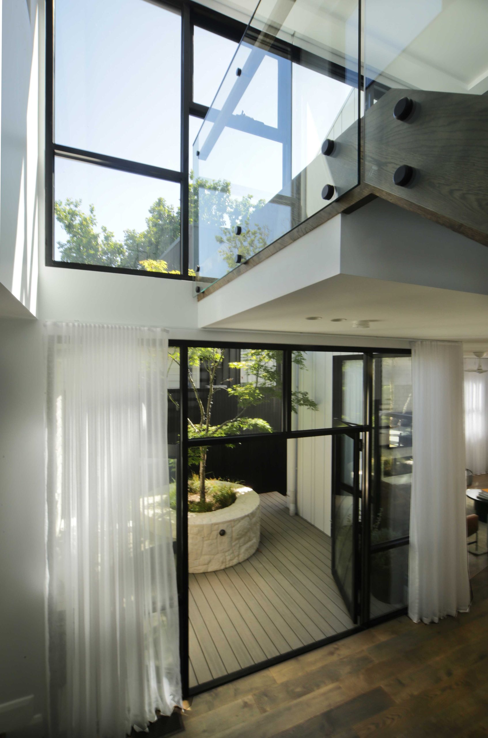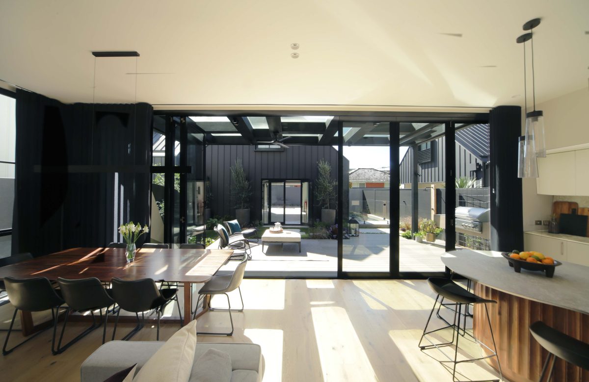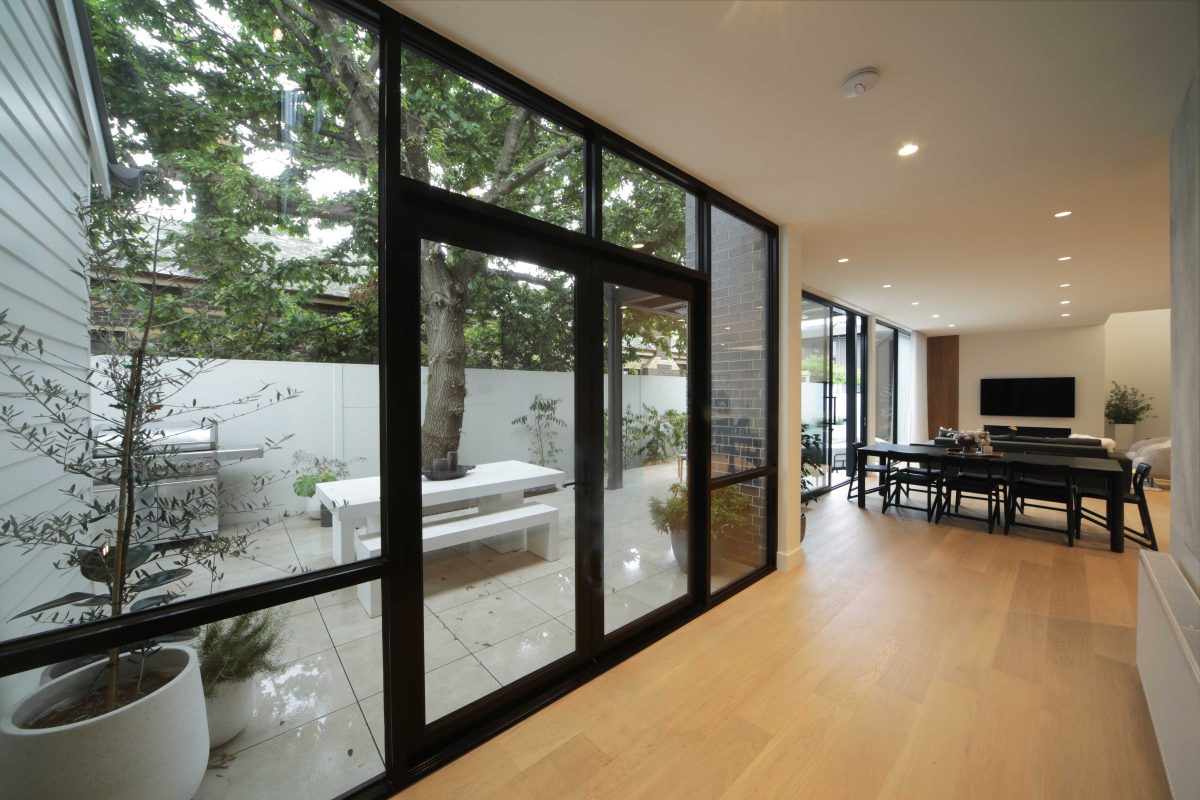 Julian Brenchley: We can’t really choose the orientation of these blocks, in much the same way that you can’t choose your family, but you love them nonetheless. All the sides of the buildings faced north, so in Melbourne, as you well know, you like to stay warm in winter and have your living face north. That presented some challenges, but the inclusion of courtyard or dividing spaces for all the houses, combined with the use of this high-tech glass, gave us this quite extraordinary change in the functionality of all the houses.