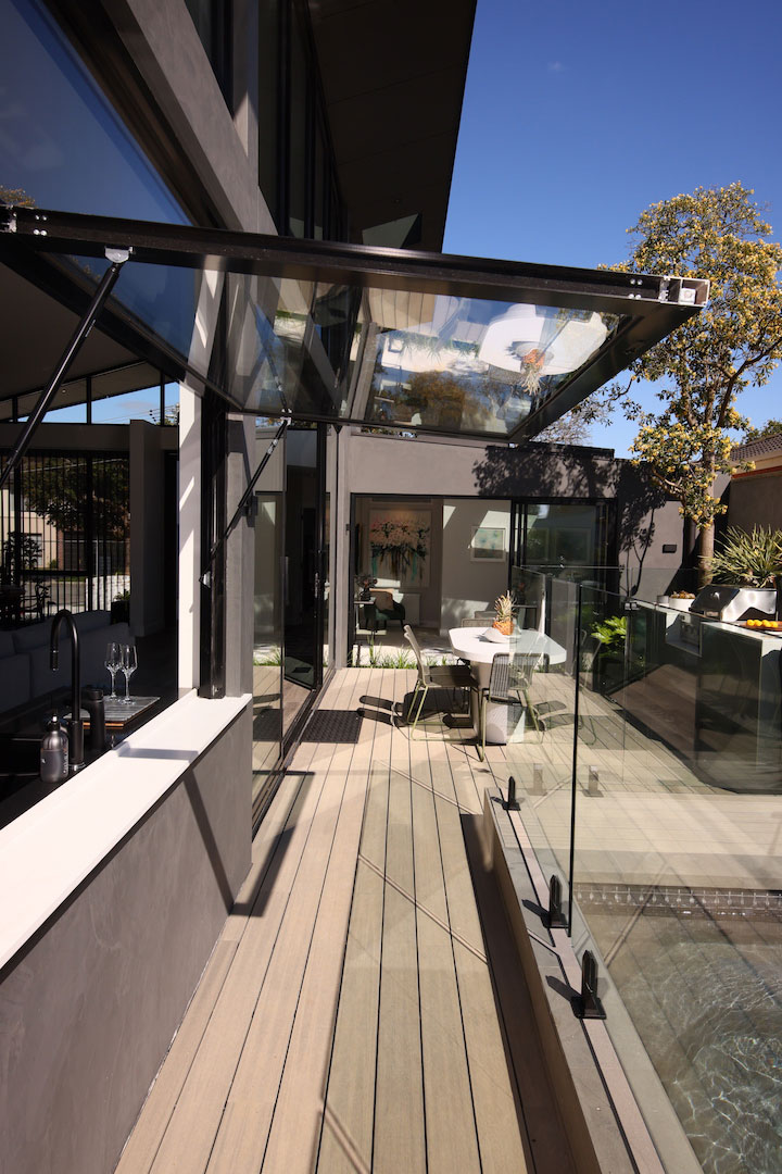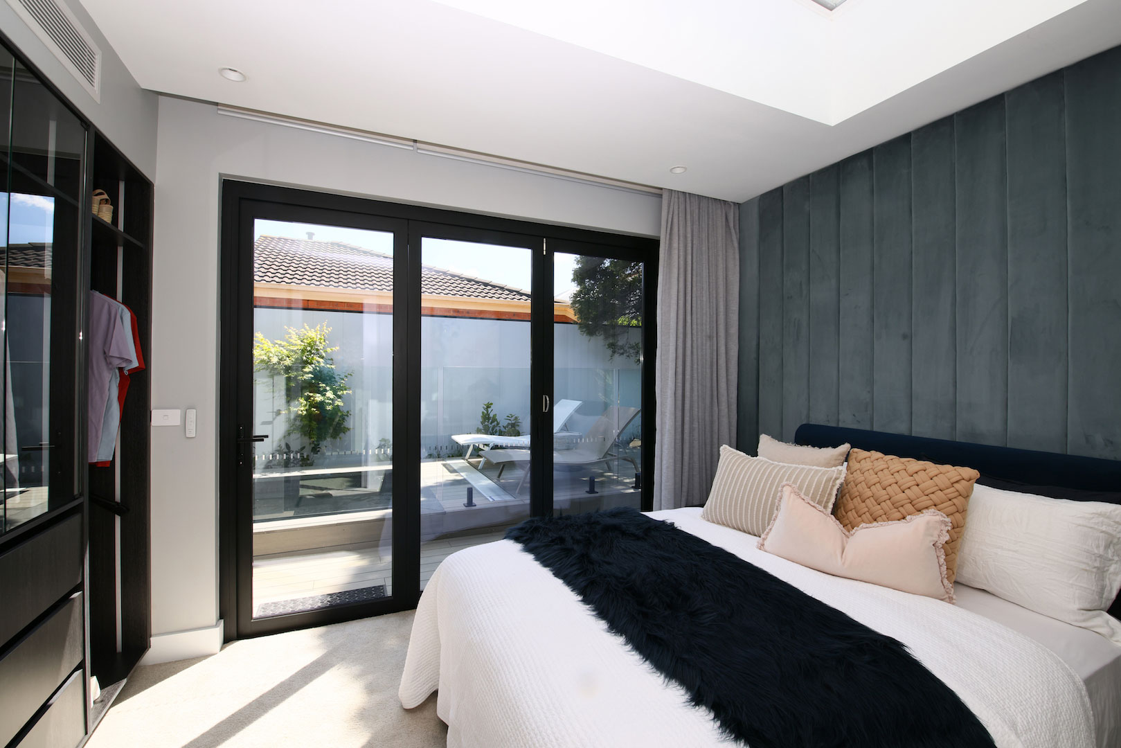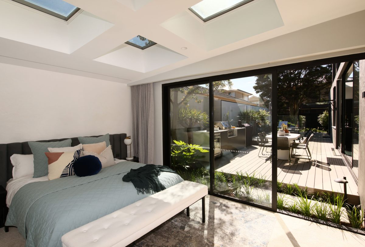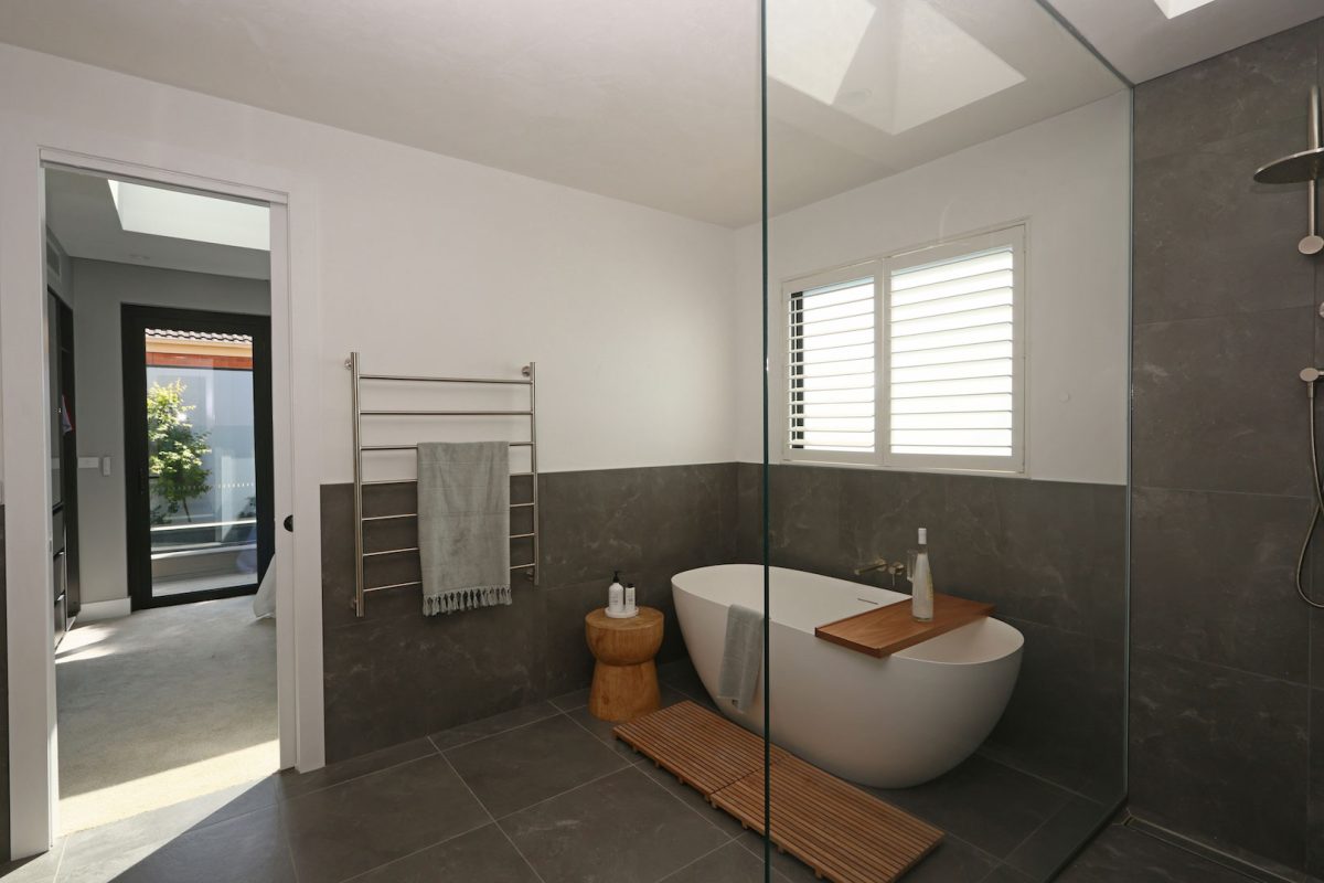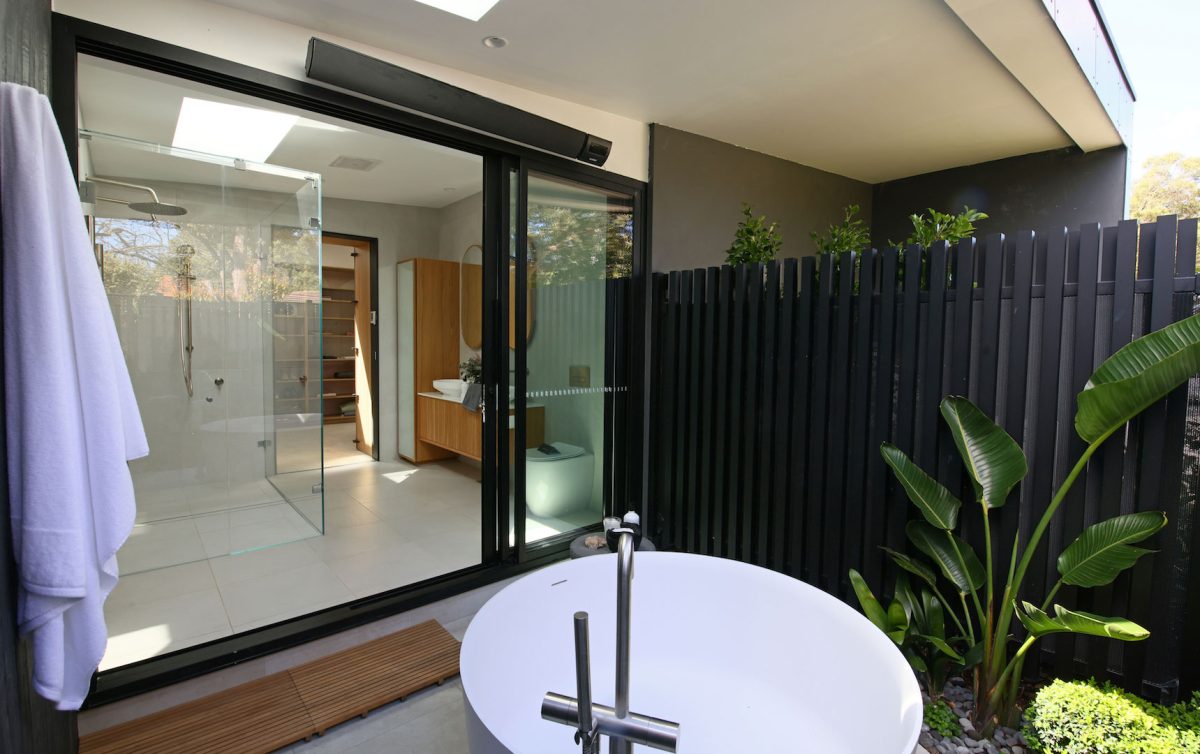 The master ensuite has an indoor / outdoor design that creates a sense of stepping into a luxury day spa. The oversized frameless shower screen and glass sliding doors leading out to the privately screened bathtub adds to the grandeur of the home.