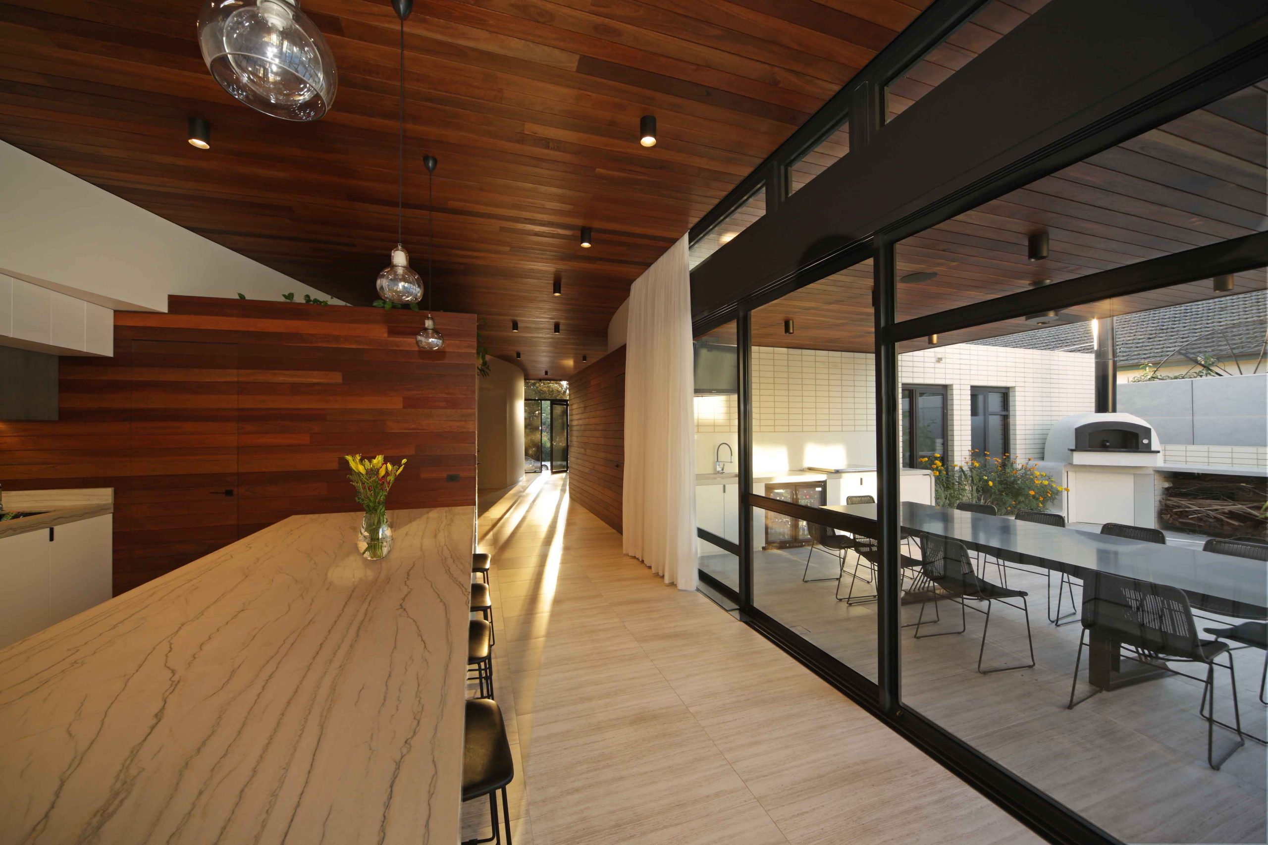 The house is quite restrained in terms of what we see with the scale and ostentatious nature of what many others are doing. I would say the house is quite modest. And it does draw cues from the modernist period of Ivanhoe. There’s some really beautiful houses from the 1950s and we wanted references from those houses in more of a contemporary way. This is where you get the courtyard and how all the primary active living areas feed off that.
