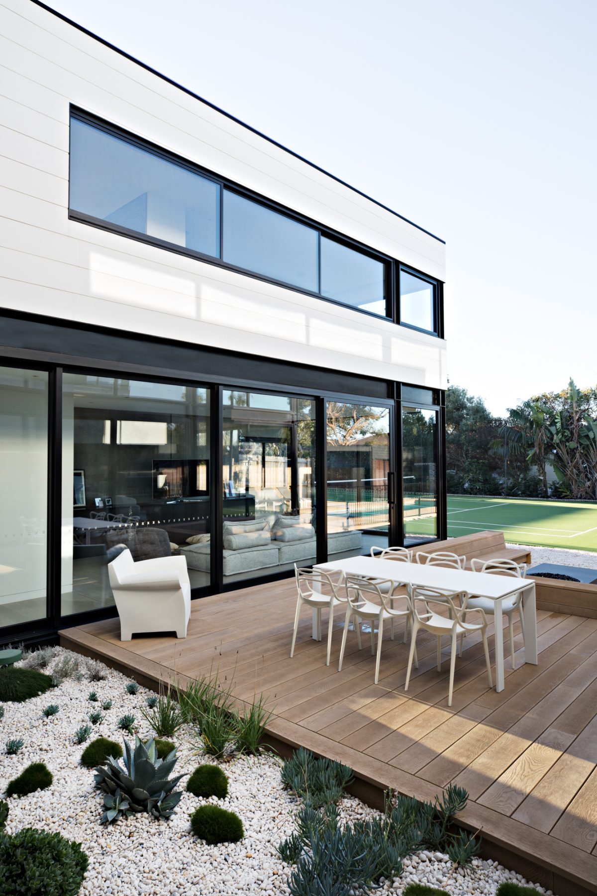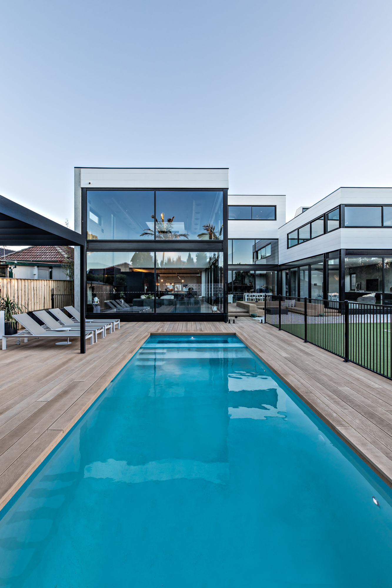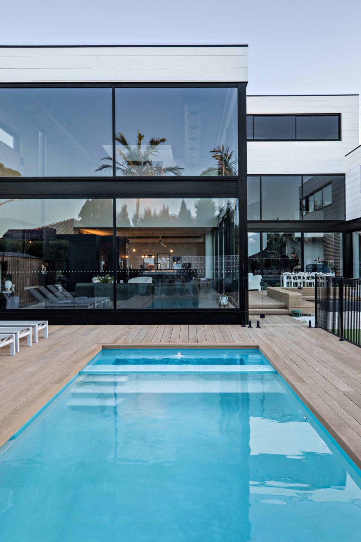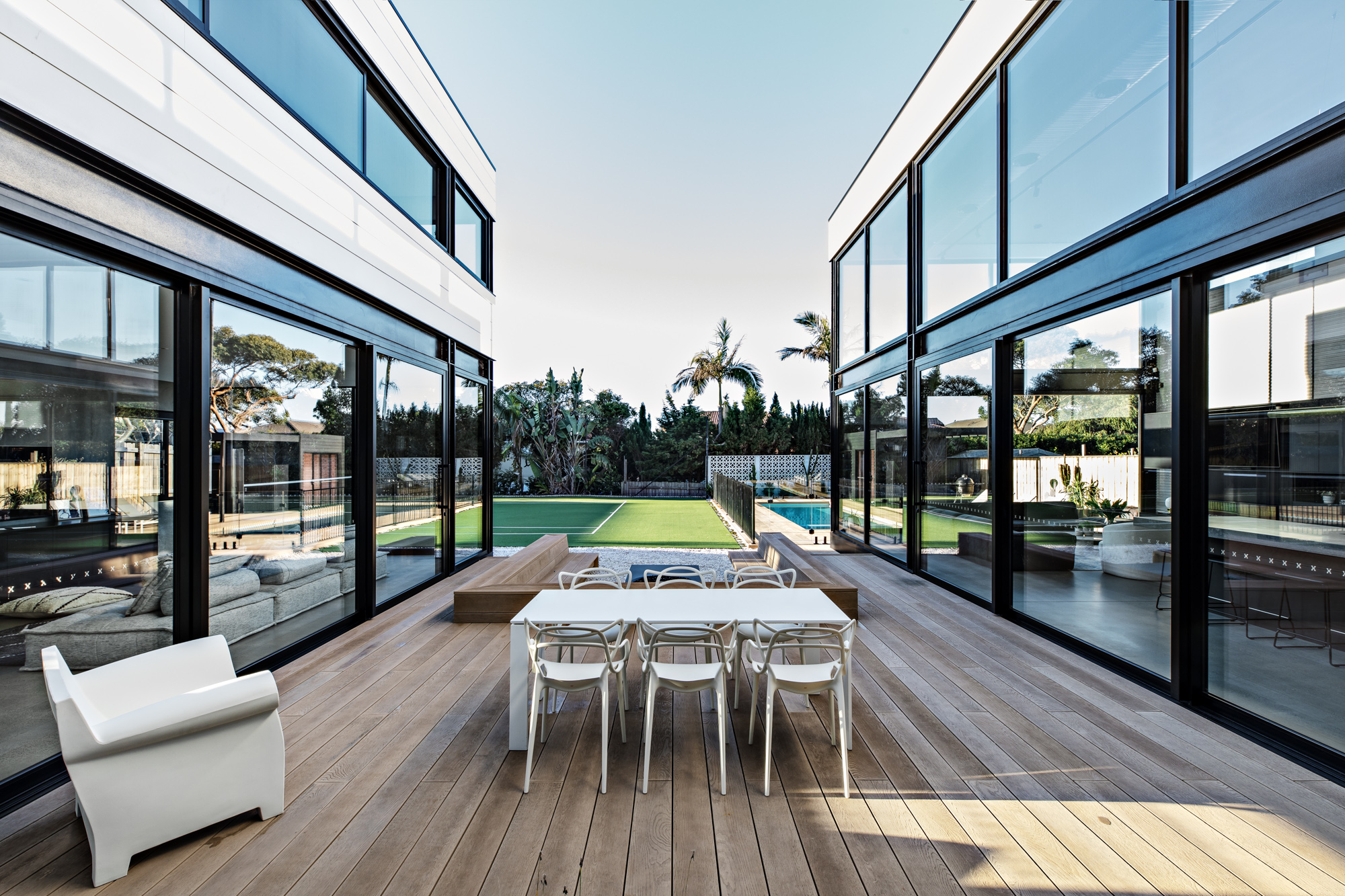 Expansive windows line the internal perimeter of the home, this creates an abundance of light as well as a sense of connection between the indoor and outdoor. This space is ideal for entertaining, taking some time out at the pool or watching the kids playing in the backyard.