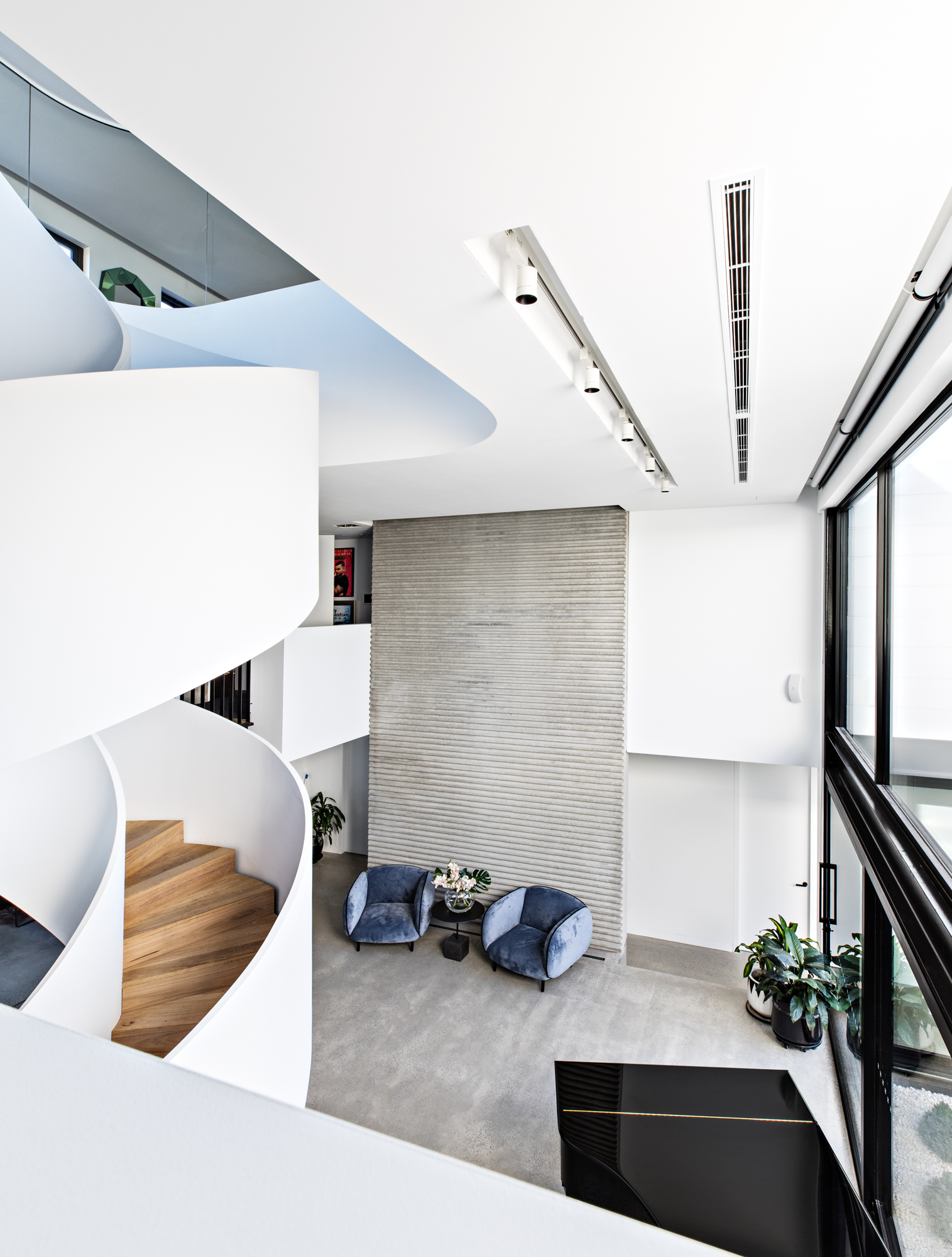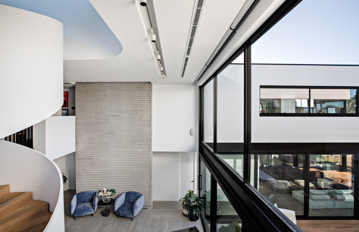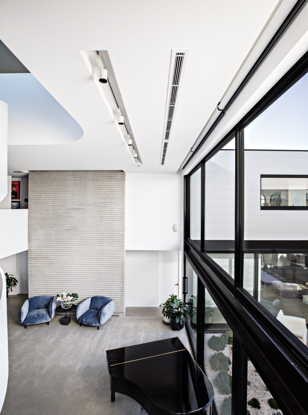 Privacy is also important, and the glass lining the internal perimeter of the home allows for privacy without the family feeling as though they are blocked in and away from the outside.