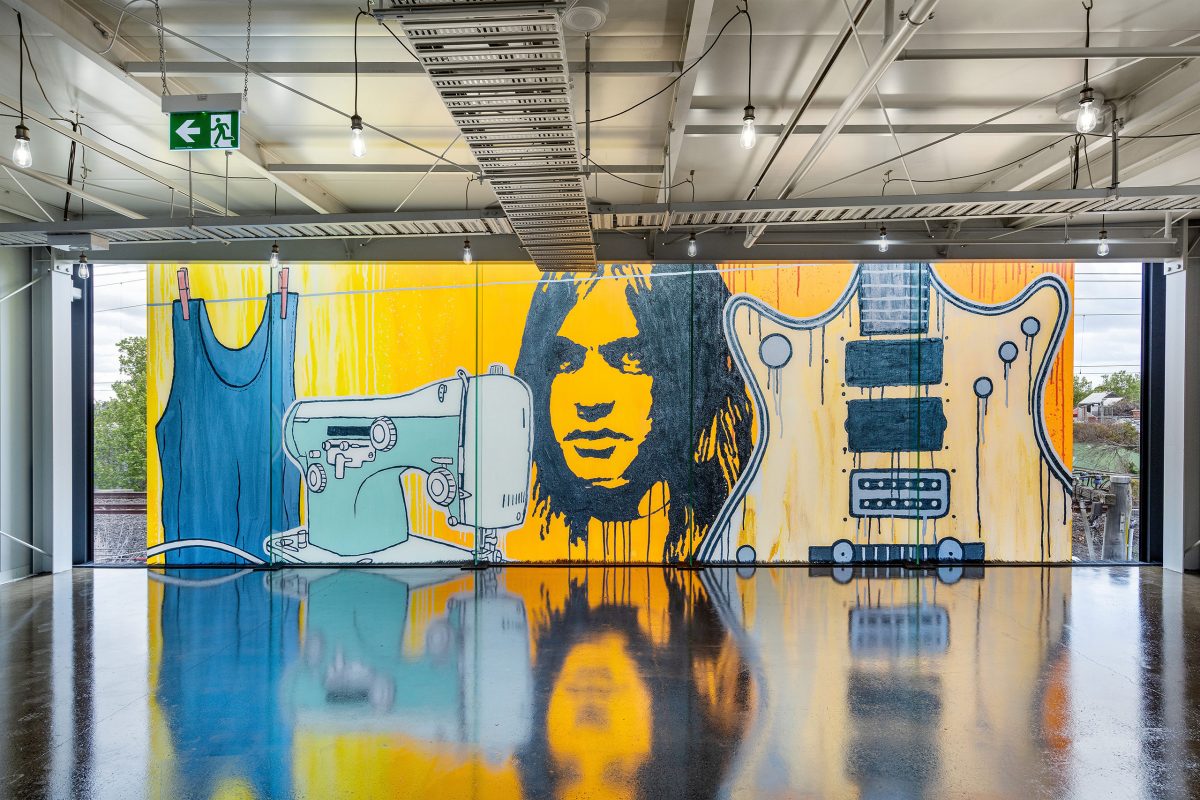Domain Hill Property Group recently developed art inspired office spaces in Melbourne. This Abbotsford space is where you see the use of PixaGraphic™ in a music history inspired artwork, adding an interesting burst of colour through the internal space as well as adding an exciting element to external façade.